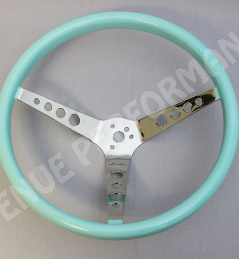 Avenue steering wheels are made out Mahogany Wood. We feature a 15.2 in diameter and a depth dish to ensure a great feeling steering wheel in your vehicle.