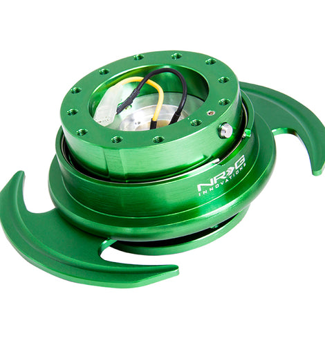 Introducing SRK-650GN our new generation 3.0 Quick Release with its new sleek design offers style and functionality that surpasses all previous versions. With the addition of the two larger levers, steering wheel removal has never been easier. The generation 3.0 utilizes the same patented ball and lock mechanism found in the previous versions. Features a green body with a green ring for added style and look to match your vehicle.