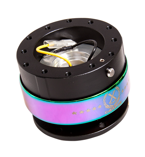 The SRK-200BK-MC generation 2.0 Quick Release features many options that conventional ball-locking quick release system do not. The Generation 2.0 is specially engineered with raised sections to prevent the scratching and stretching of the hub while a self locking feature adds increased safety and functionality. Features a black body with neochrome ring for added style and look. Each unit is made from the highest quality aircraft grade aluminum and is anodized for maximum durability and finish.