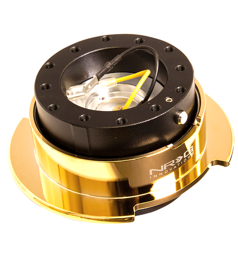 The SRK-250BK-C/GD generation 2.5 Quick Release features many options that conventional ball-locking quick release system do not. The Generation 2.5 is specially engineered with raised sections to prevent the scratching and stretching of the hub while a self locking feature adds increased safety and functionality. Features a black body with gold ring for added style and look. Each unit is made from the highest quality aircraft grade aluminum and is anodized for maximum durability and finish.