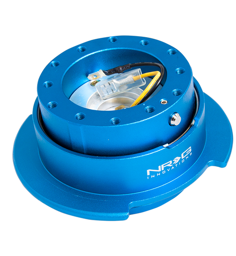 The SRK-250BL Quick Release utilizes all the features of the Second Generation Systems ball-locking quick release system engineered with raised sections to prevent the scratching and stretching of the hub while a self locking feature adds increased safety and functionality, with the added benefit of an upgraded flared ring. This allows much easier release for the steering wheel by providing added leverage and grip onto the pull ring. Features a blue body with a blue ring for added style and look to any vehicle. Perfect for race applications where the use of gloves are required.