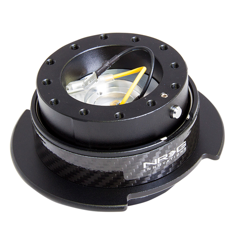 The SRK-250CF Quick Release utilizes all the features of the Second Generation Systems ball-locking quick release system engineered with raised sections to prevent the scratching and stretching of the hub while a self locking feature adds increased safety and functionality, with the added benefit of an upgraded flared ring. This allows much easier release for the steering wheel by providing added leverage and grip onto the pull ring. Features a black body with a black Carbon Fiber ring for added style and look to any vehicle. Perfect for race applications where the use of gloves are required.