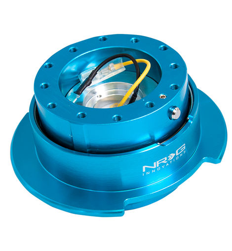 The SRK-250NB Quick Release utilizes all the features of the Second Generation Systems ball-locking quick release system engineered with raised sections to prevent the scratching and stretching of the hub while a self locking feature adds increased safety and functionality, with the added benefit of an upgraded flared ring. This allows much easier release for the steering wheel by providing added leverage and grip onto the pull ring. Features a light blue body with a light blue ring for added style and look to any vehicle. Perfect for race applications where the use of gloves are required.