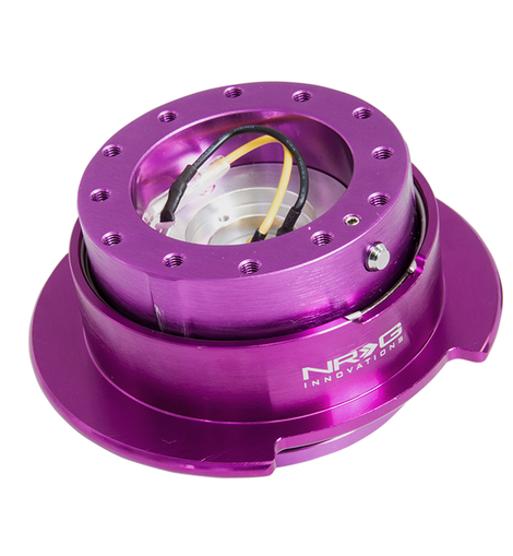 The SRK-250PP Quick Release utilizes all the features of the Second Generation Systems ball-locking quick release system engineered with raised sections to prevent the scratching and stretching of the hub while a self locking feature adds increased safety and functionality, with the added benefit of an upgraded flared ring. This allows much easier release for the steering wheel by providing added leverage and grip onto the pull ring. Features a purple body with a purple ring for added style and look to any vehicle. Perfect for race applications where the use of gloves are required.