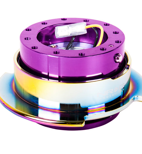 The SRK-280PP-MC Quick Release utilizes all the features of the Second Generation Systems ball-locking quick release system engineered with raised sections to prevent the scratching and stretching of the hub while a self locking feature adds increased safety and functionality, with the added benefit of an upgraded Diamond Cut neochrome flared ring. This allows much easier release for the steering wheel by providing added leverage and grip onto the pull ring. Features a purple body with a neochrome ring for added style and look to any vehicle. Perfect for race applications where the use of gloves are required.