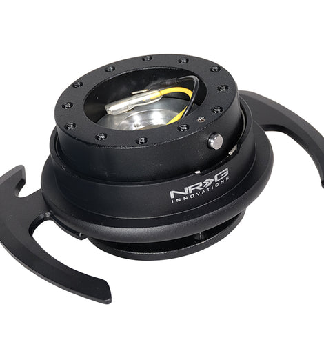 Introducing SRK-700BK our new generation 4.0 Quick Release with its new sleek design inspired from racers all around the world that offers style and functionality that surpasses all previous versions. With the addition of the two larger levers, steering wheel removal has never been easier. The generation 4.0 utilizes the same patented ball and lock mechanism found in the previous versions. Features a black body with a black ring for added style and look to match your vehicle.